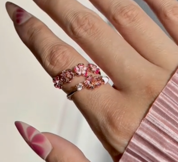 Drawing inspiration from the delicate beauty of blooming peach blossoms, this stunning ring captures the essence of spring in full bloom. Its design features vivid pink and white hues that mimic the petals and buds of real flowers, bringing a touch of nature's elegance to your jewelry collection.